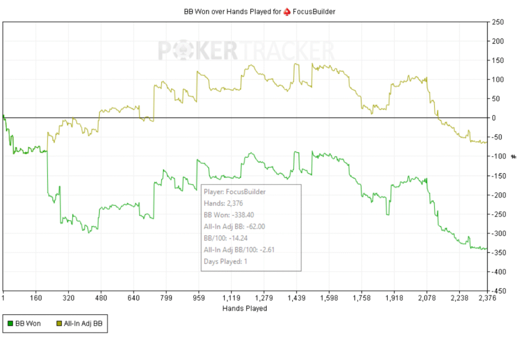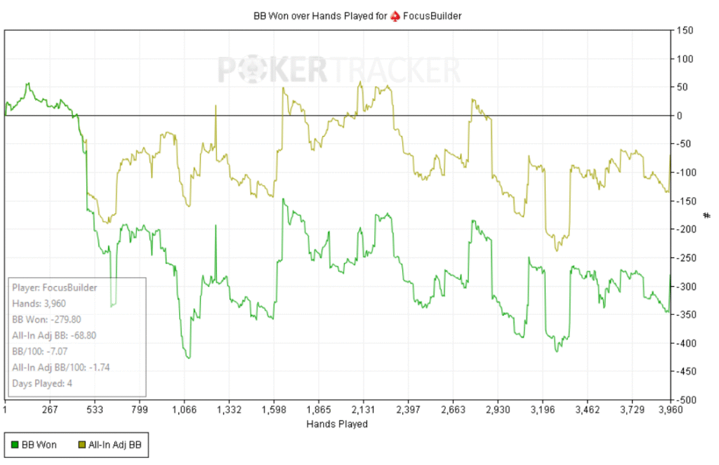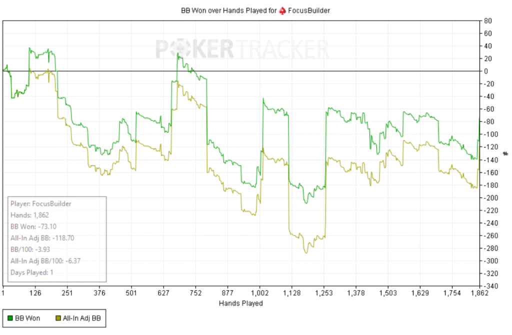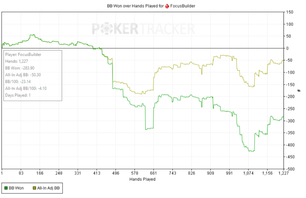 Día de run malo. La varianza pegó duro: el EV dice “arriba”, pero las fichas cuentan otra historia. Probé de todo: multitablear, bajar mesas para jugar con más foco, incluso una sola mesa; mezclé salas, intercalé sesiones, y nada. Hoy no había modo Dios.
