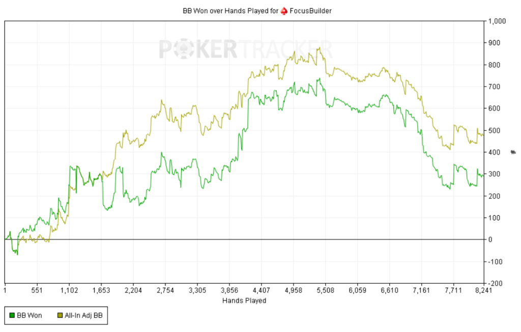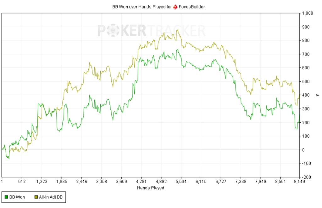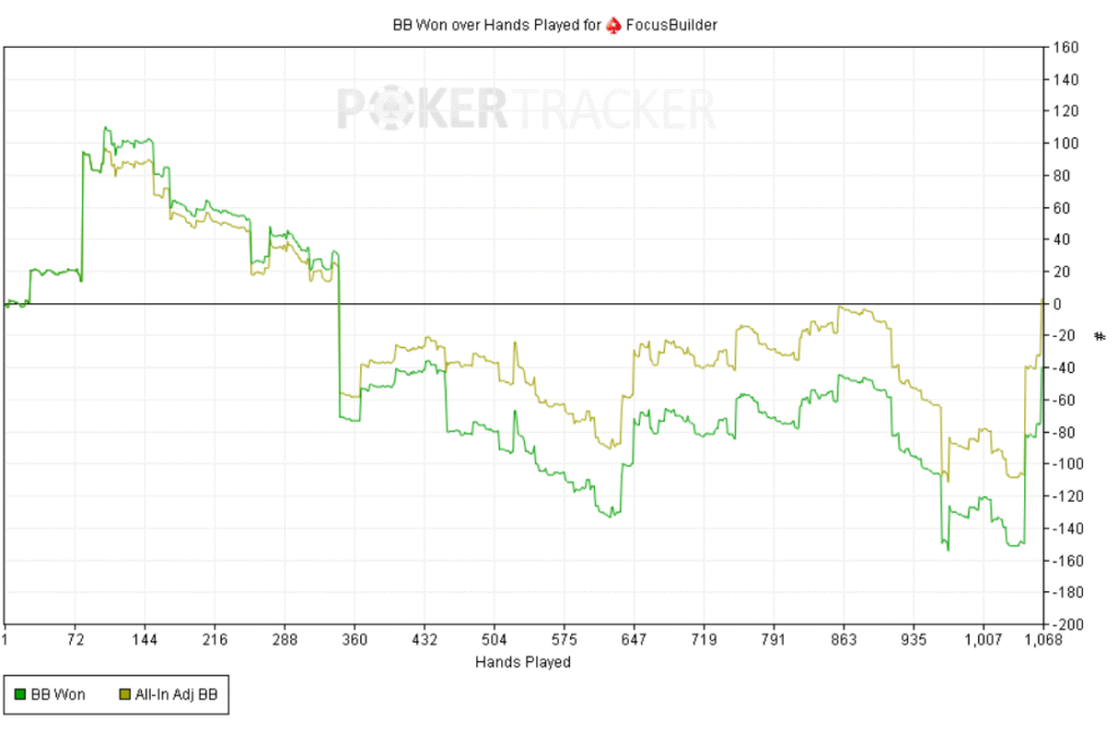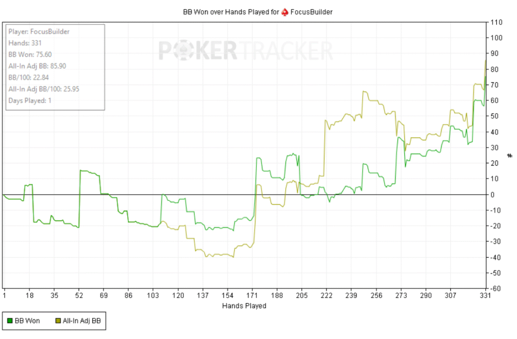 La sesión de hoy me dejó sentimientos encontrados. Jugué en dos salas: en una runneé “modo Dios” y en la otra se me torcieron prácticamente todas las manos. Rara vez me tildo, pero hoy, aunque fui ligeramente en positivo casi toda la sesión, me costaba aceptar que en la otra todo saliera mal. Fue un tilt de frustración —me hizo soltar alguna tontería—, pero no me sacó de la disciplina ni de la estrategia. Aun así, solo puedo estar agradecido por la oportunidad de vivir esta experiencia.