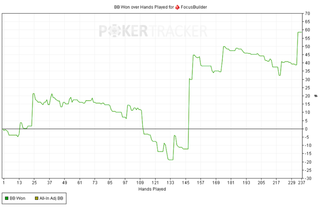 La sesión de hoy ha sido tranquila, pero yo estaba mentalmente agotado, aún así he podido rascar unas blinds.